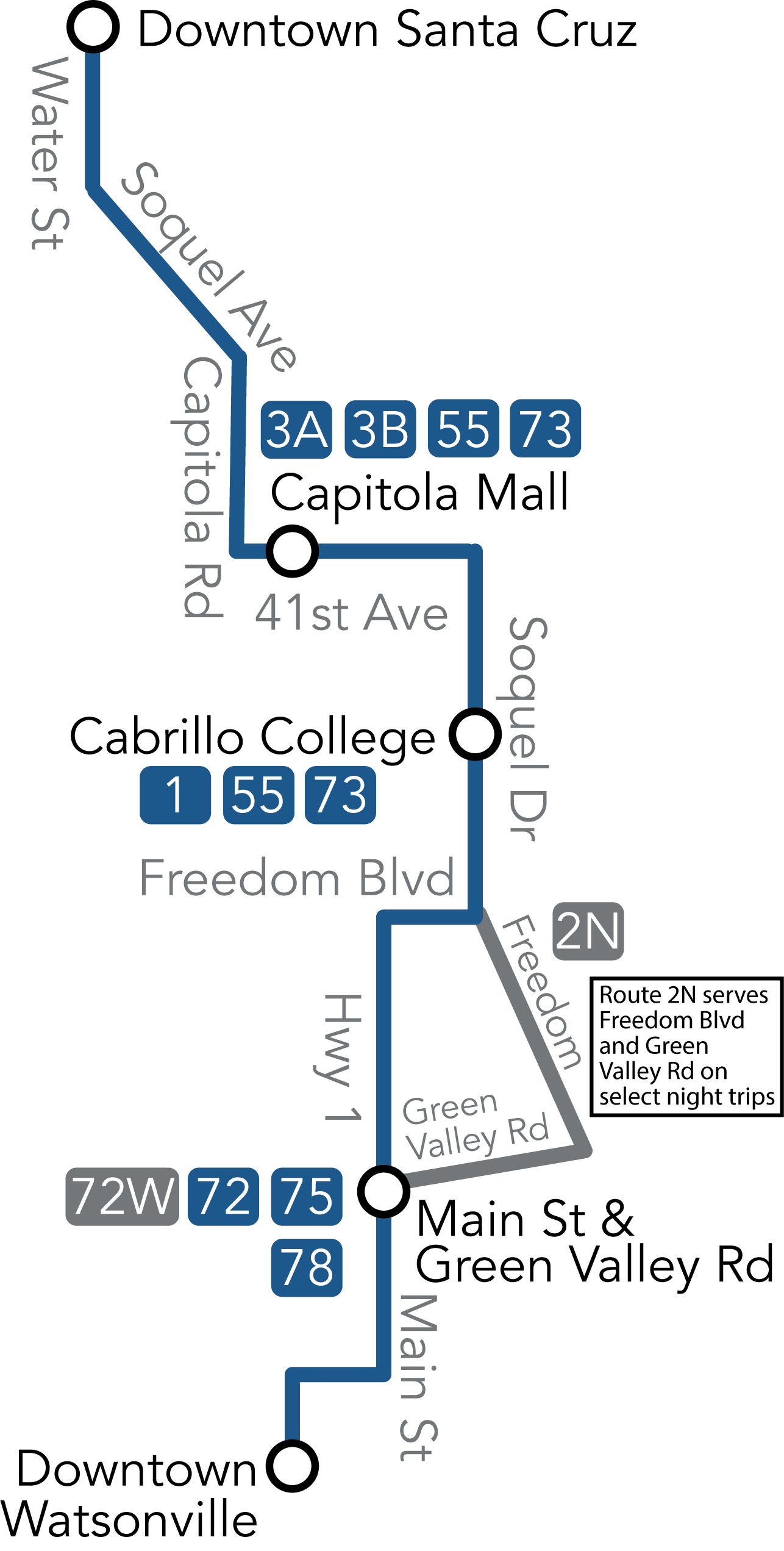 Due to the Murray Street Bridge Seismic Retrofit Project, Route 3A Inbound (Capitola Mall to Downtown) will operate on a detour starting March 24, 2025, until further notice. The 3A will continue on 7th Ave to Capitola Road, to Soquel Dr, to Seabright Ave, to Broadway returning to normal routing. Please be prepared for additional detours as the project progresses. Visit https://rt.scmetro.org for METRO Real-Time tracking.